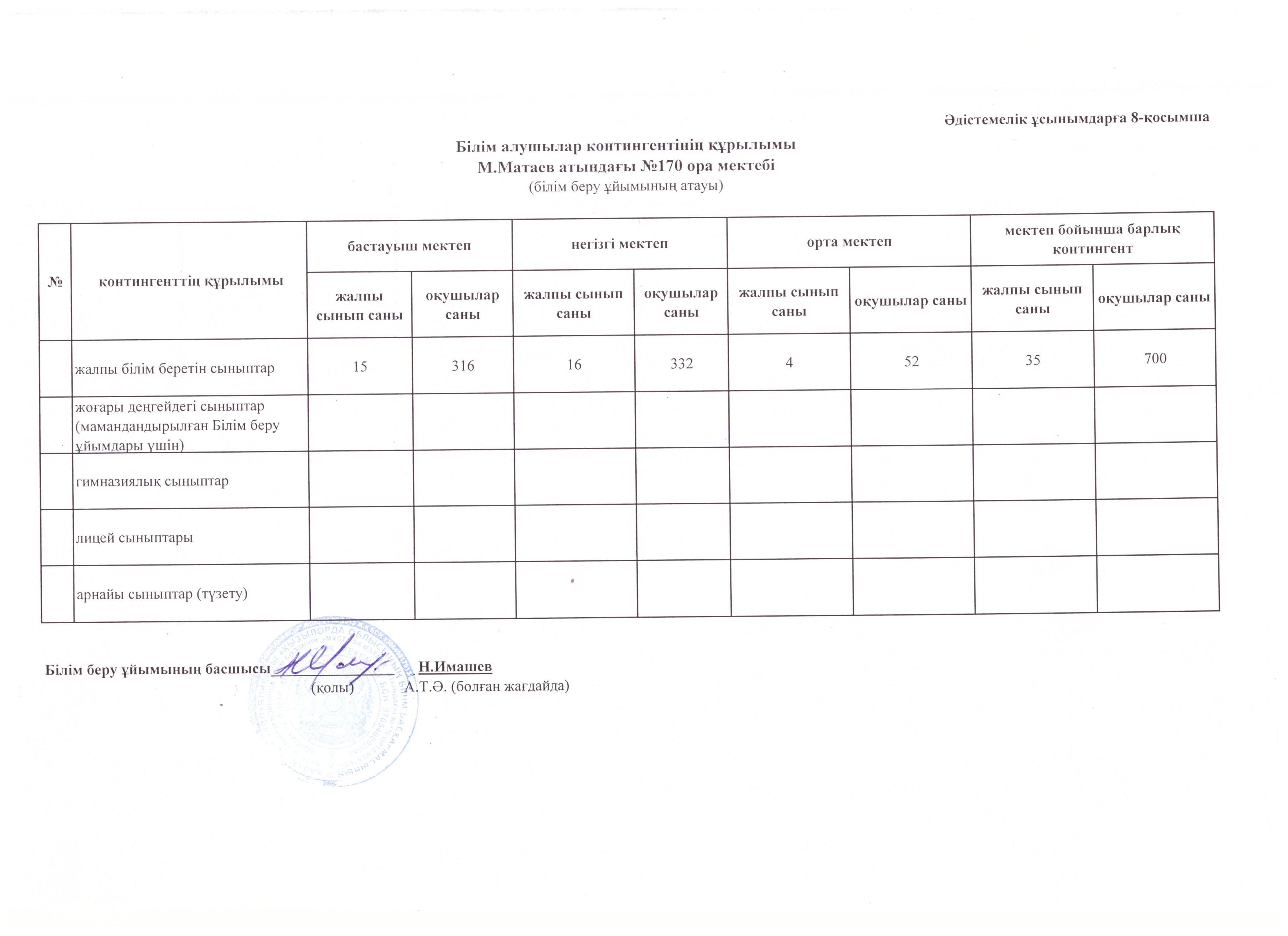 - Білім алушылар контингенті