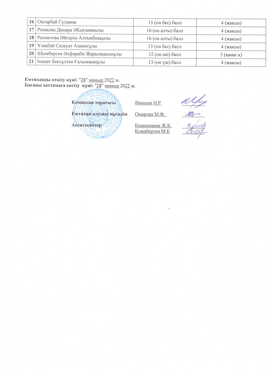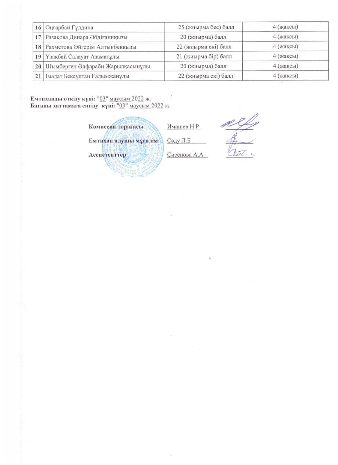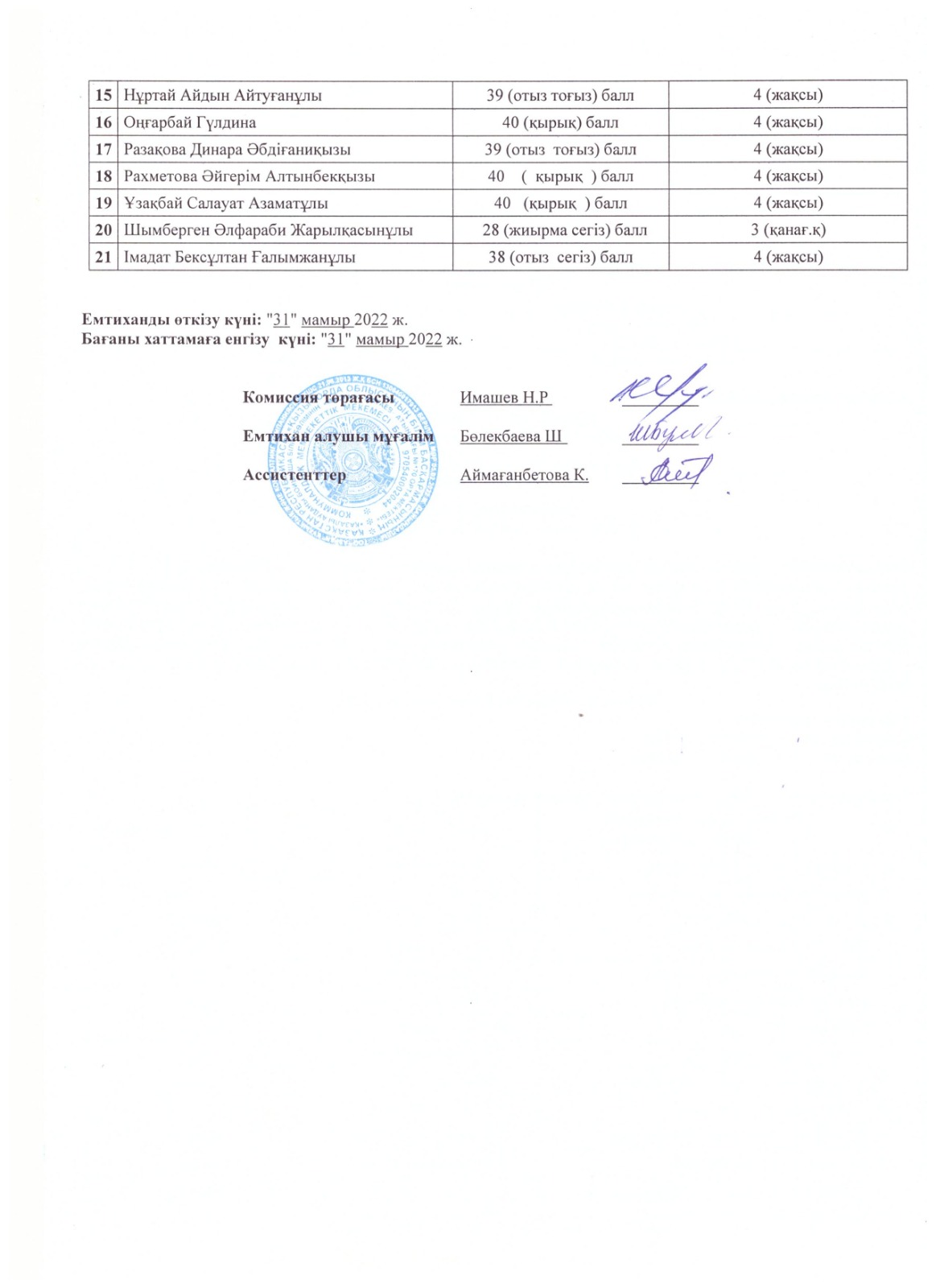 Оқу жұмыс жоспары 2021-2022 оқу жылы