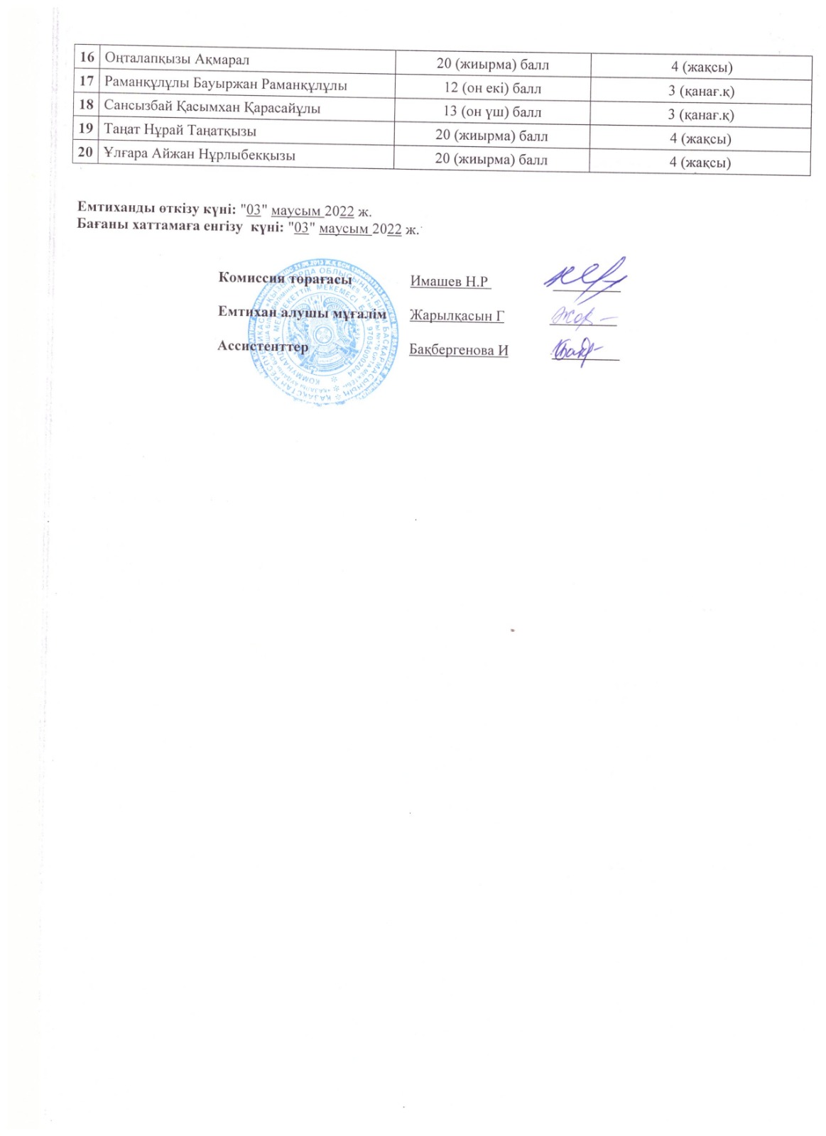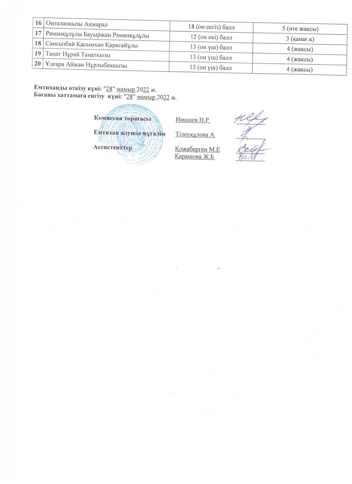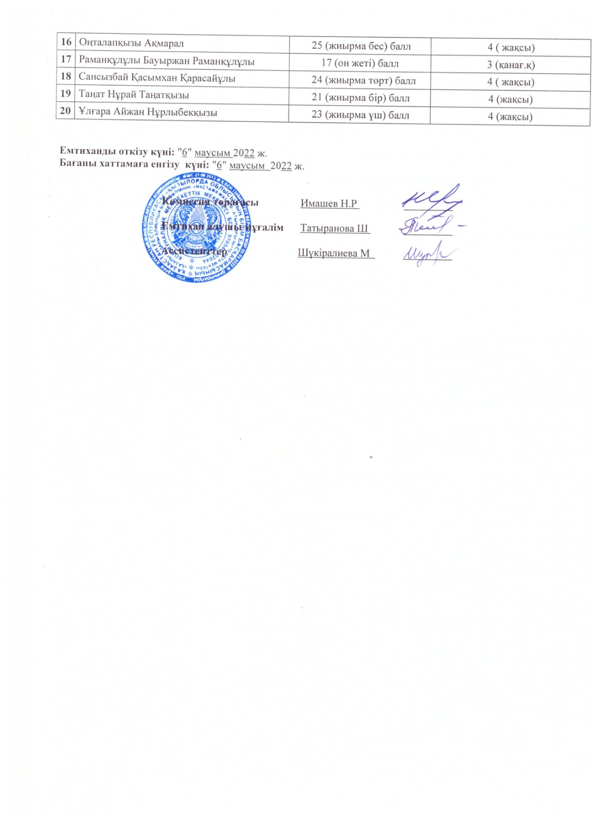 Оқу жұмыс жоспары 2021-2022 оқу жылы