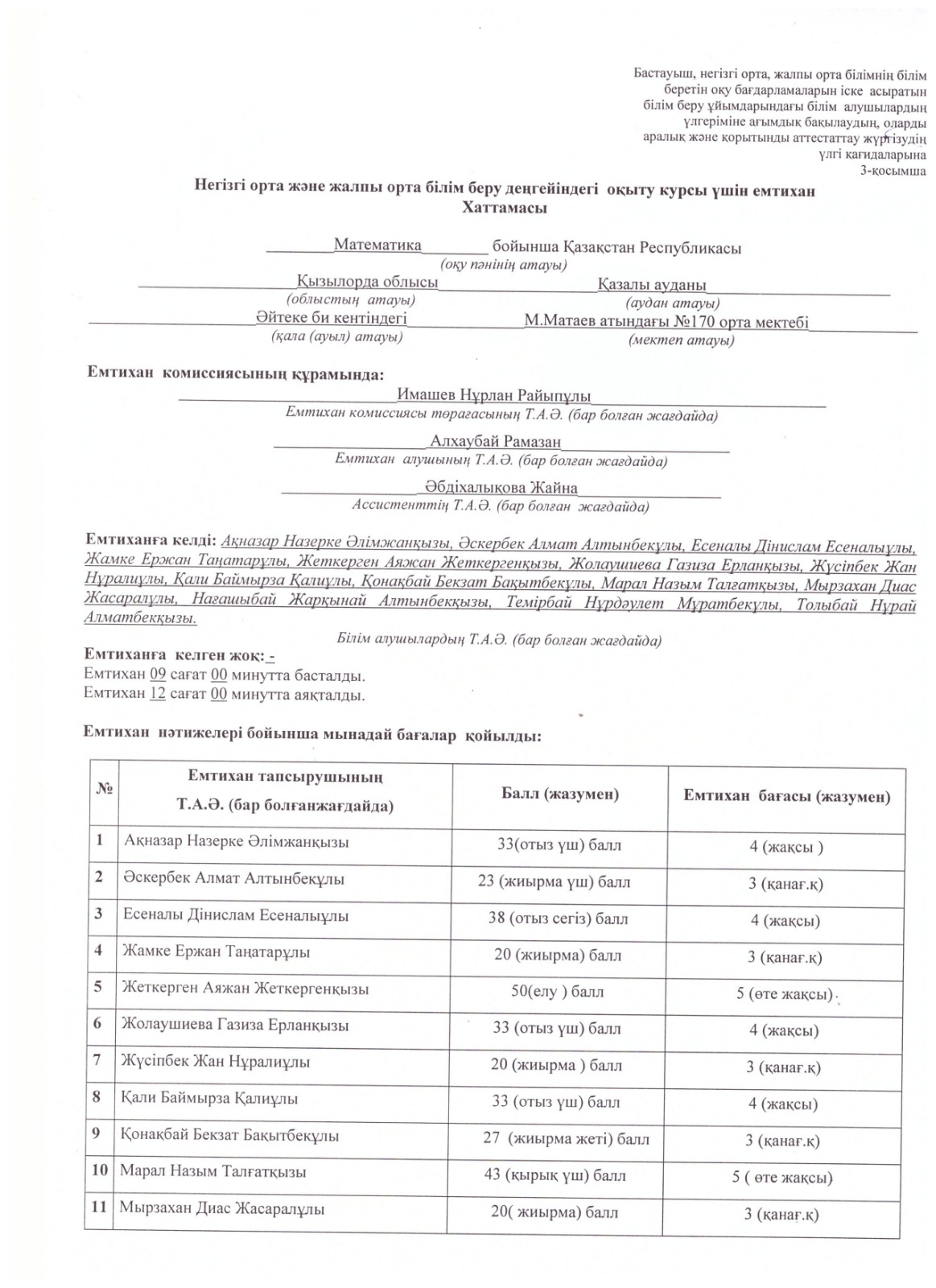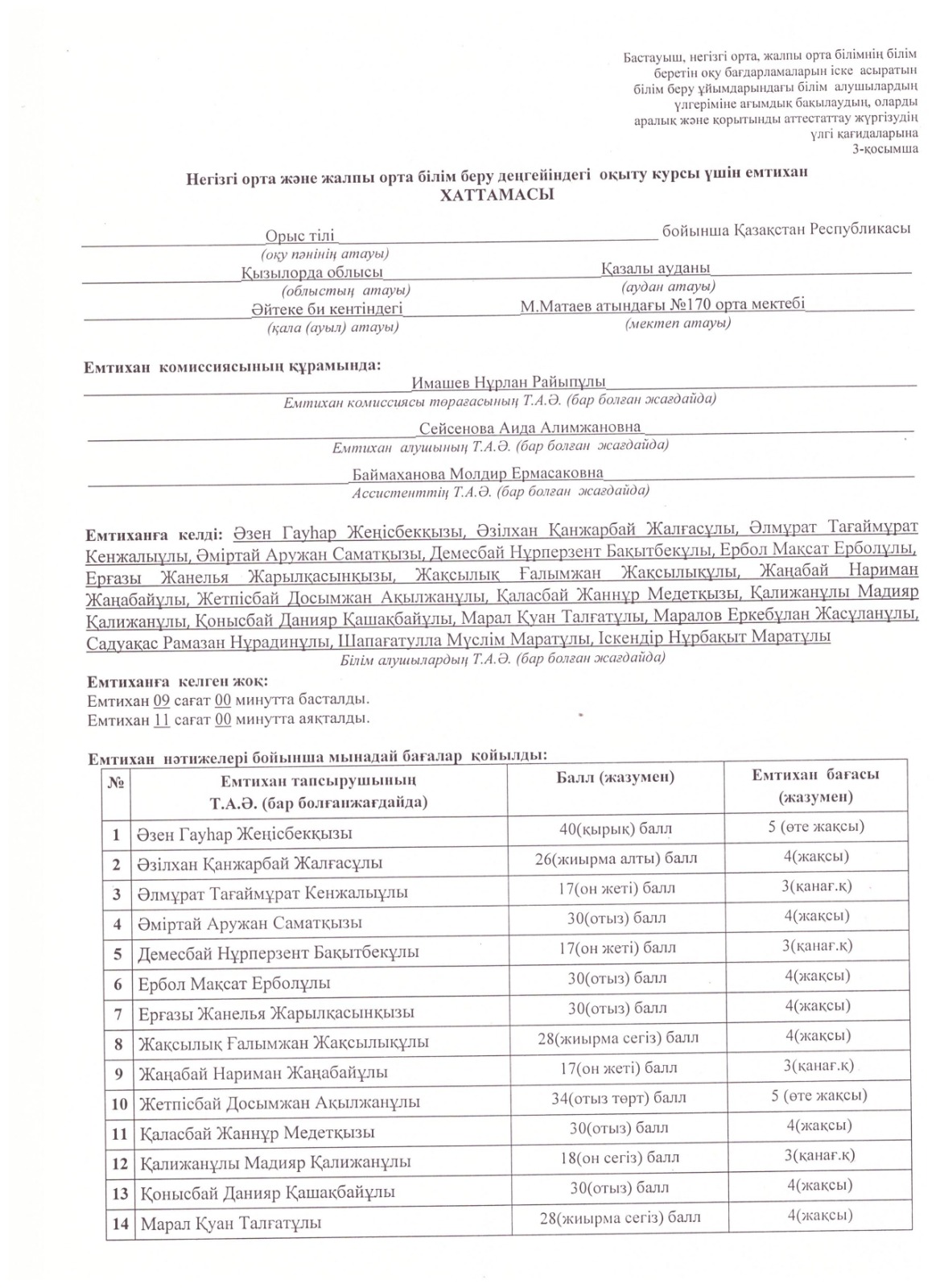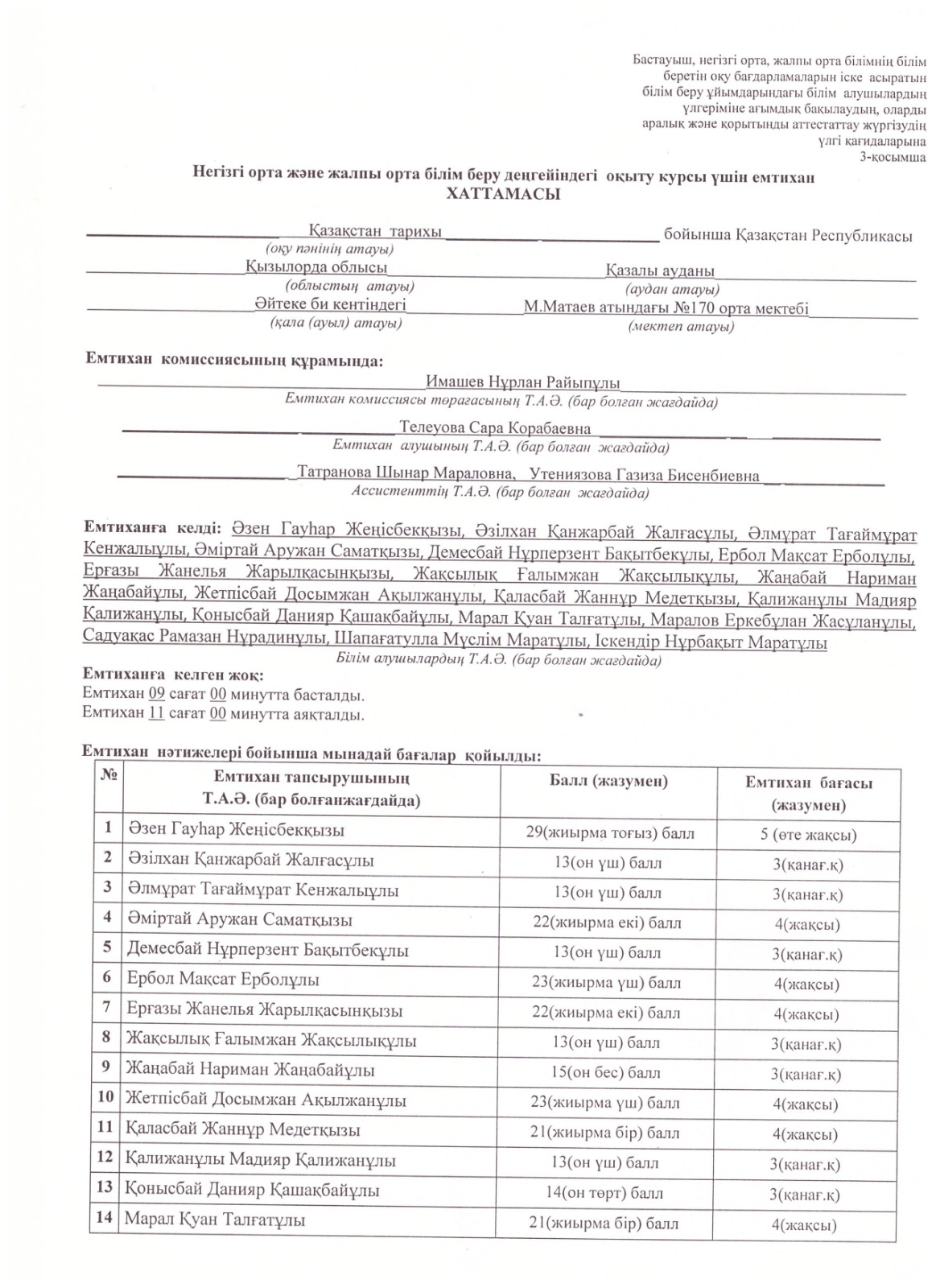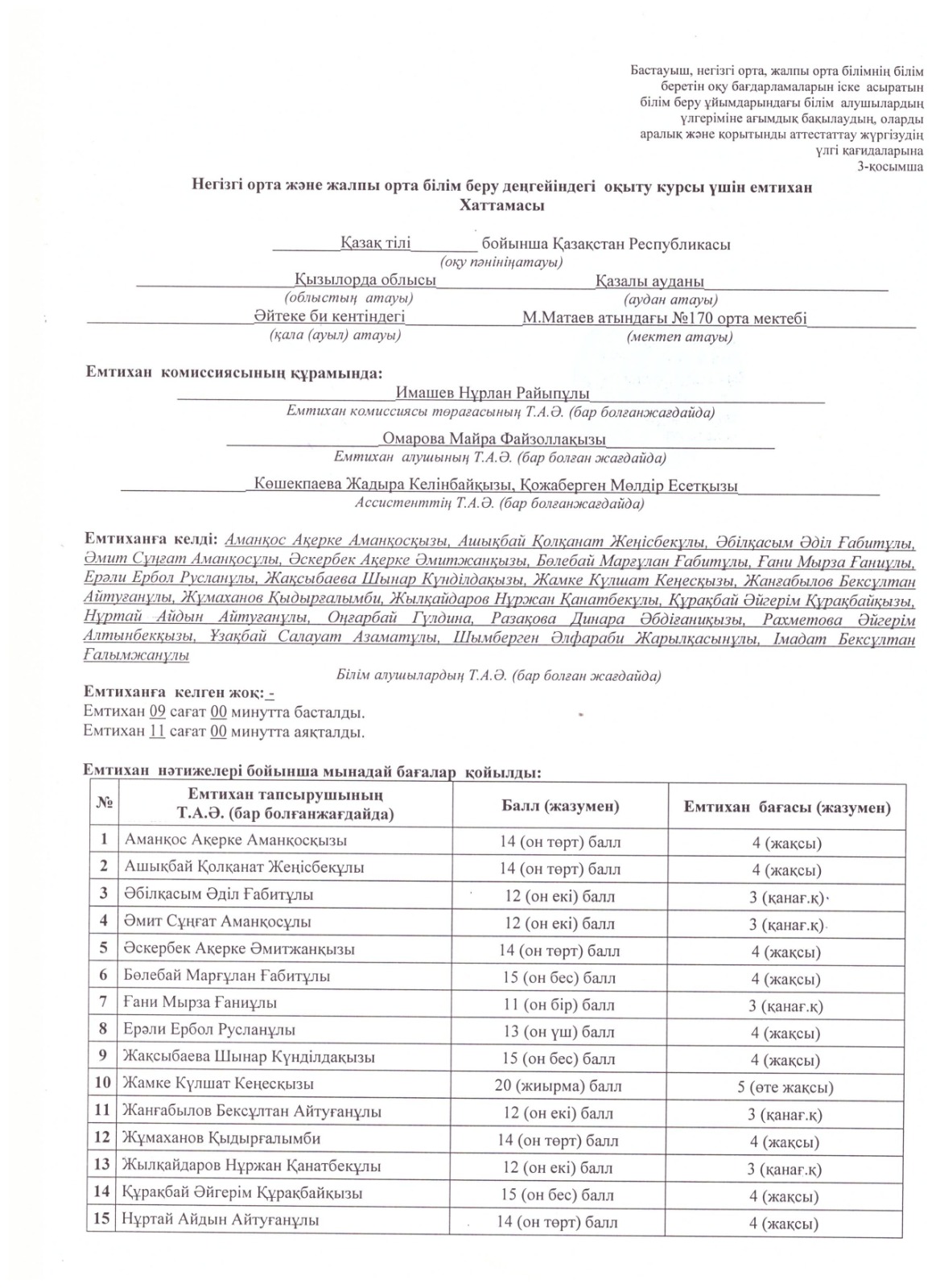 "Мұстафа Матаев" атындағы №170 орта мектебі" КММ