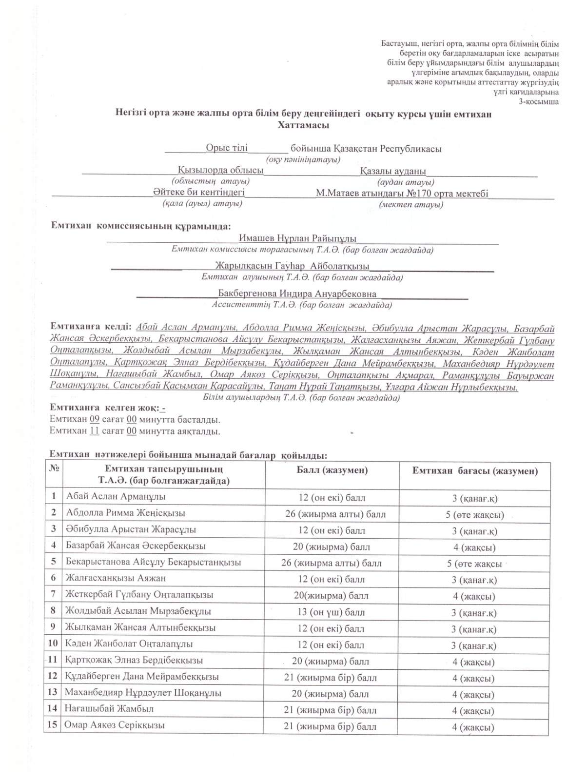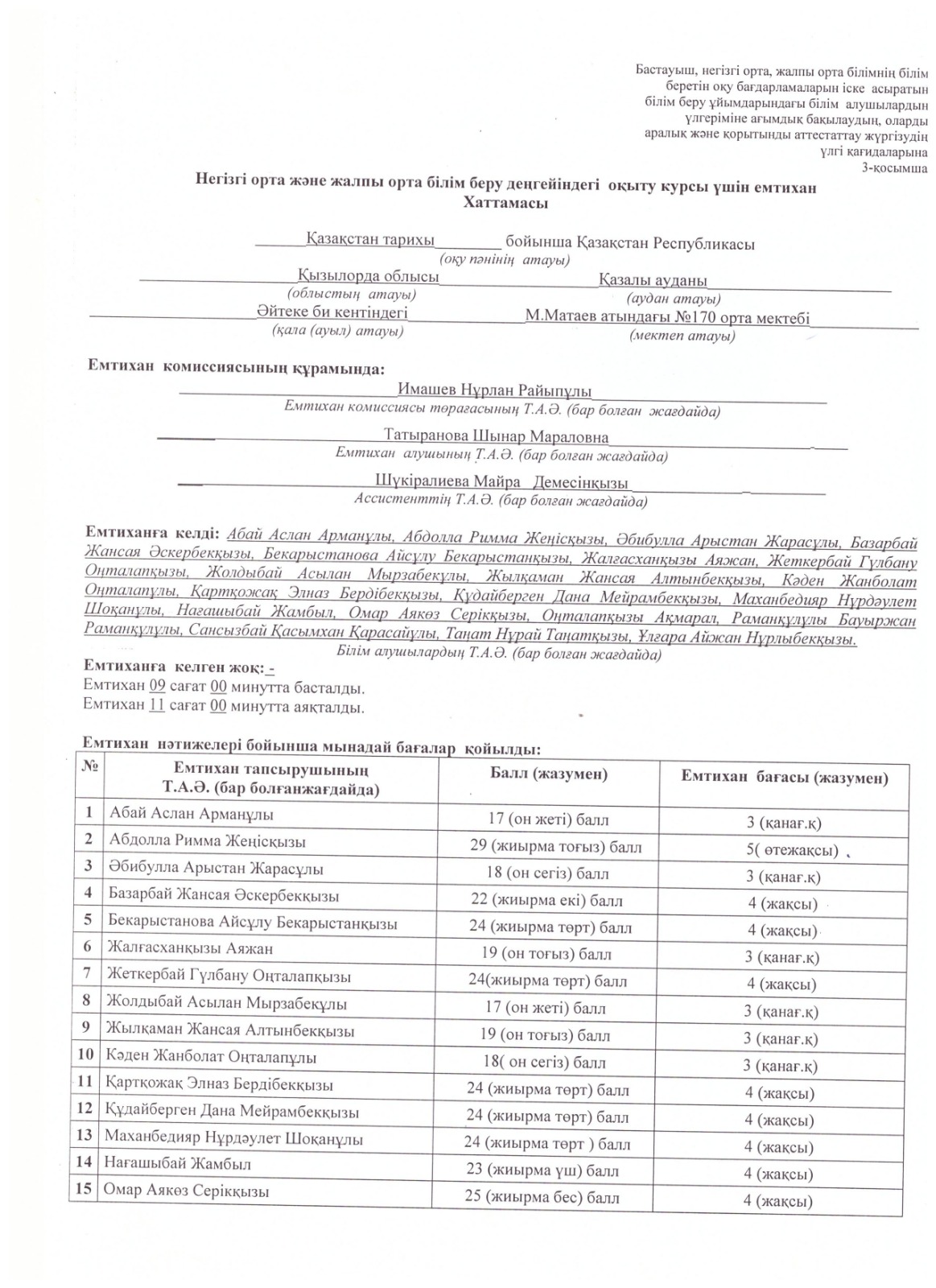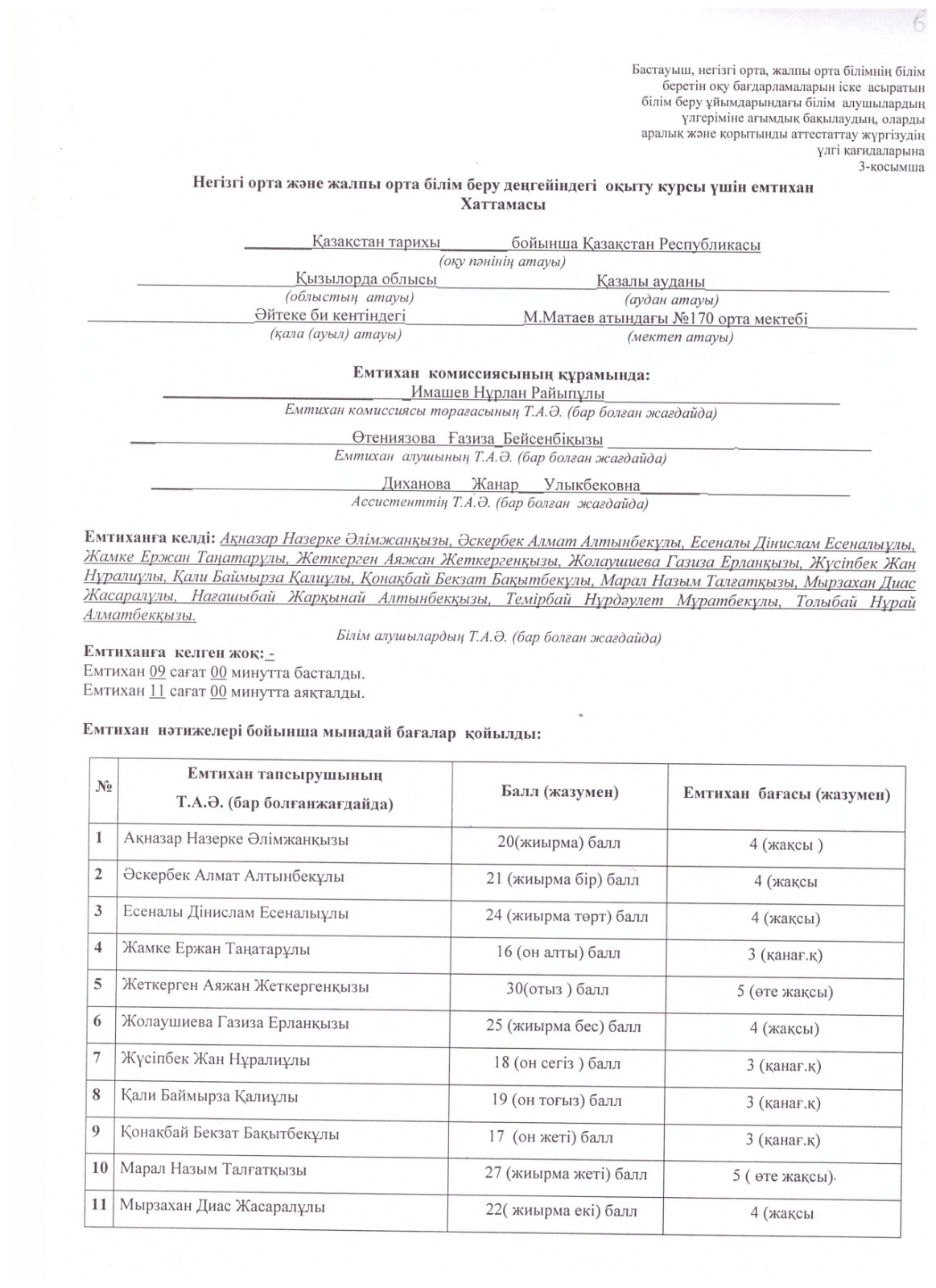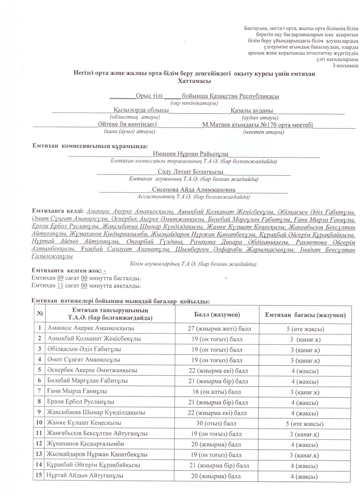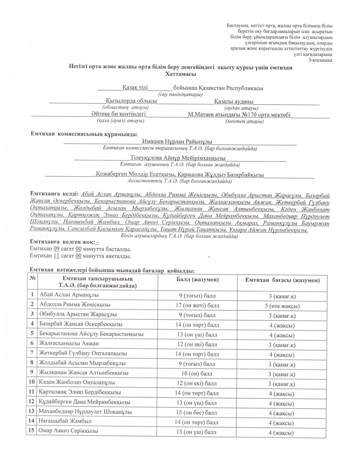 "Мұстафа Матаев" атындағы №170 орта мектебі" КММ