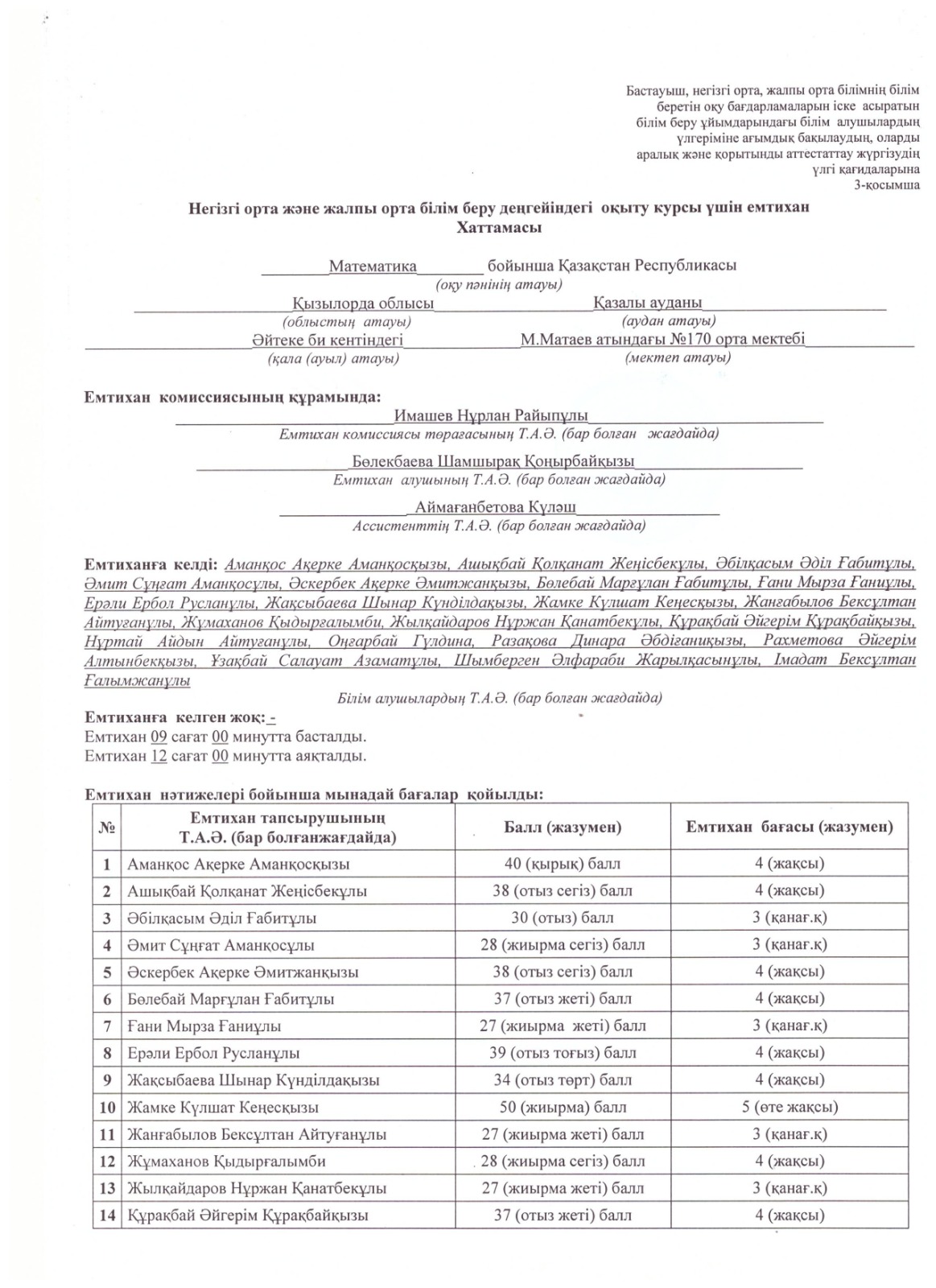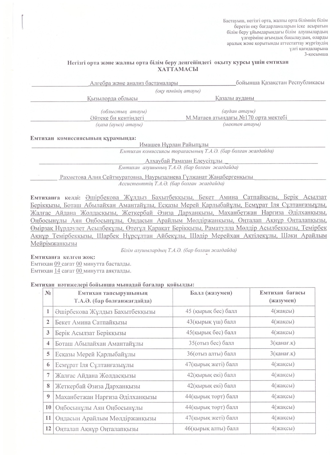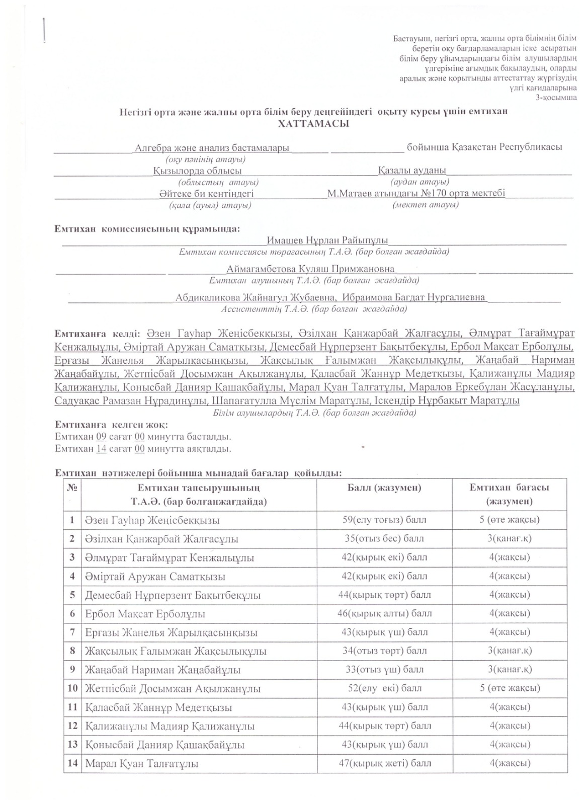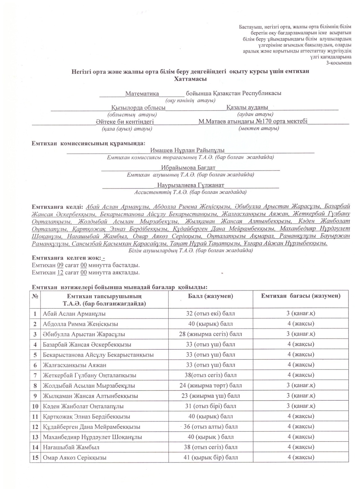 "Мұстафа Матаев" атындағы №170 орта мектебі" КММ