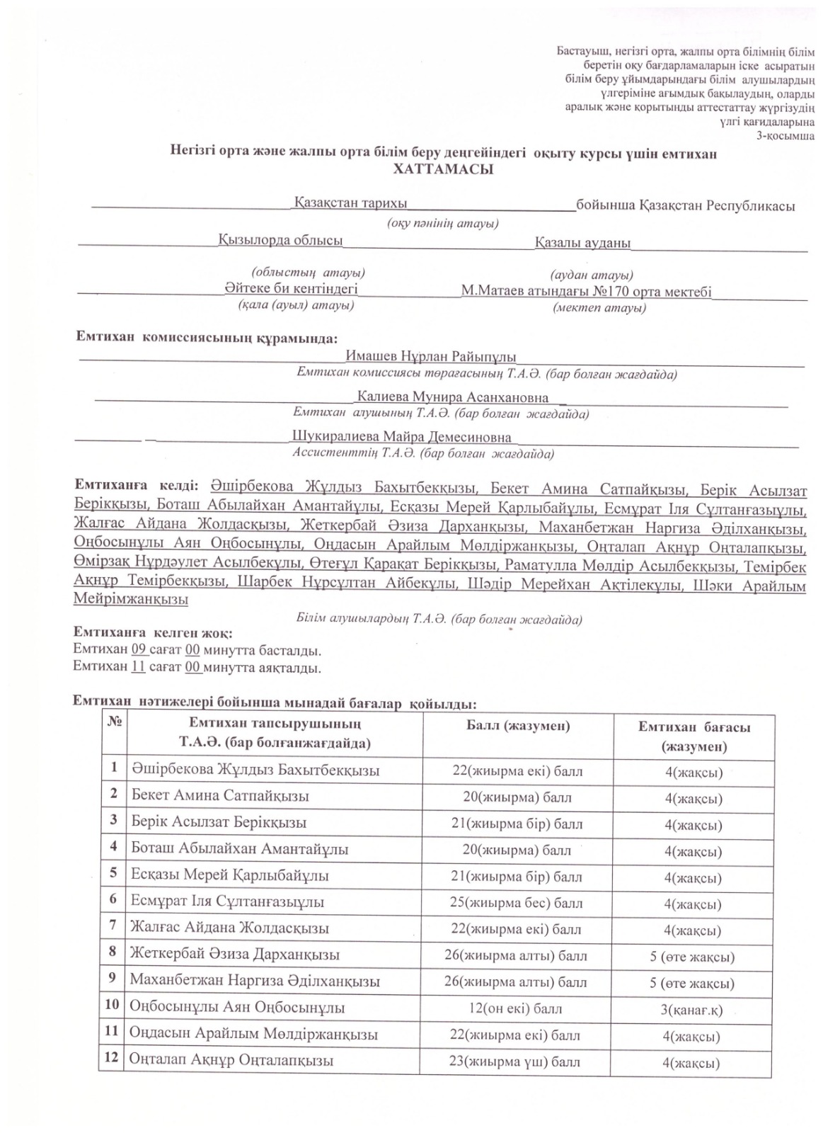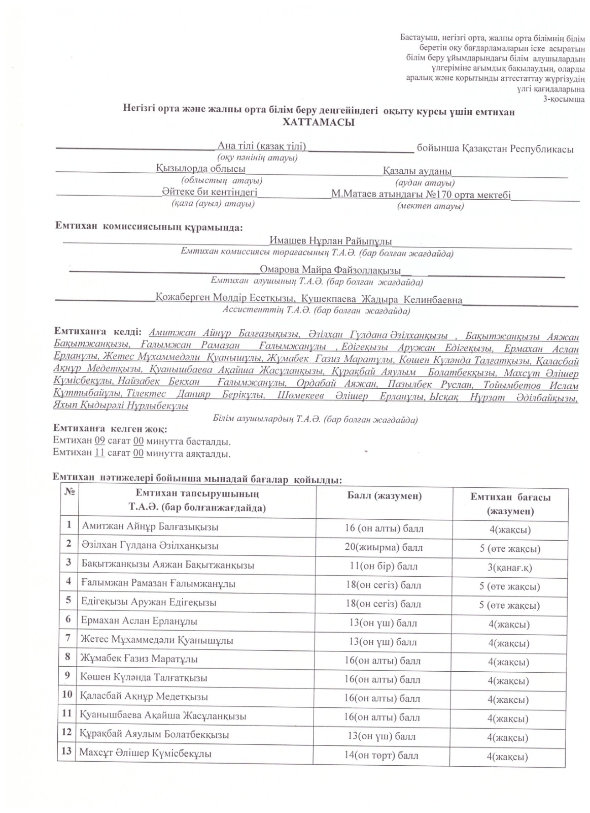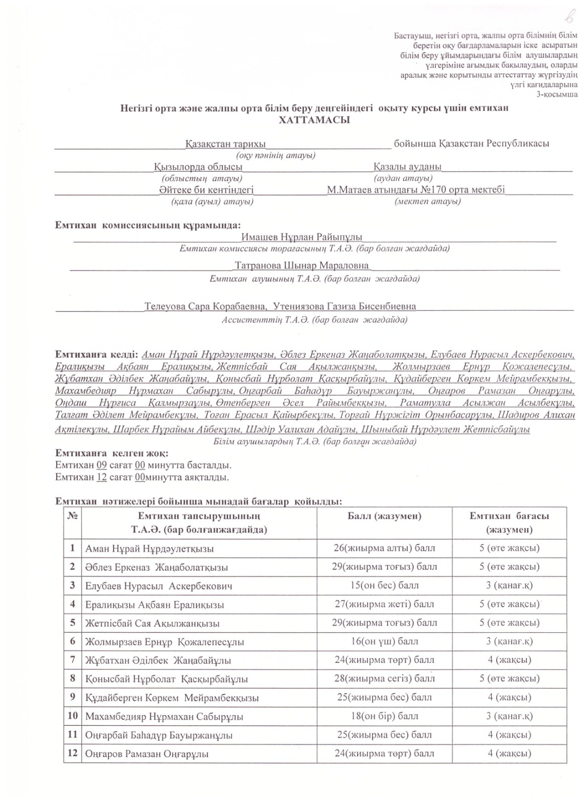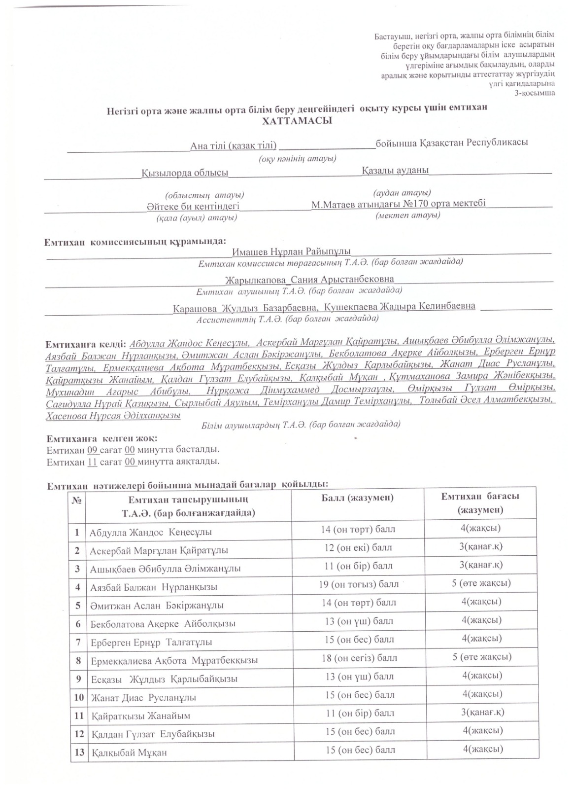 "Мұстафа Матаев" атындағы №170 орта мектебі" КММ