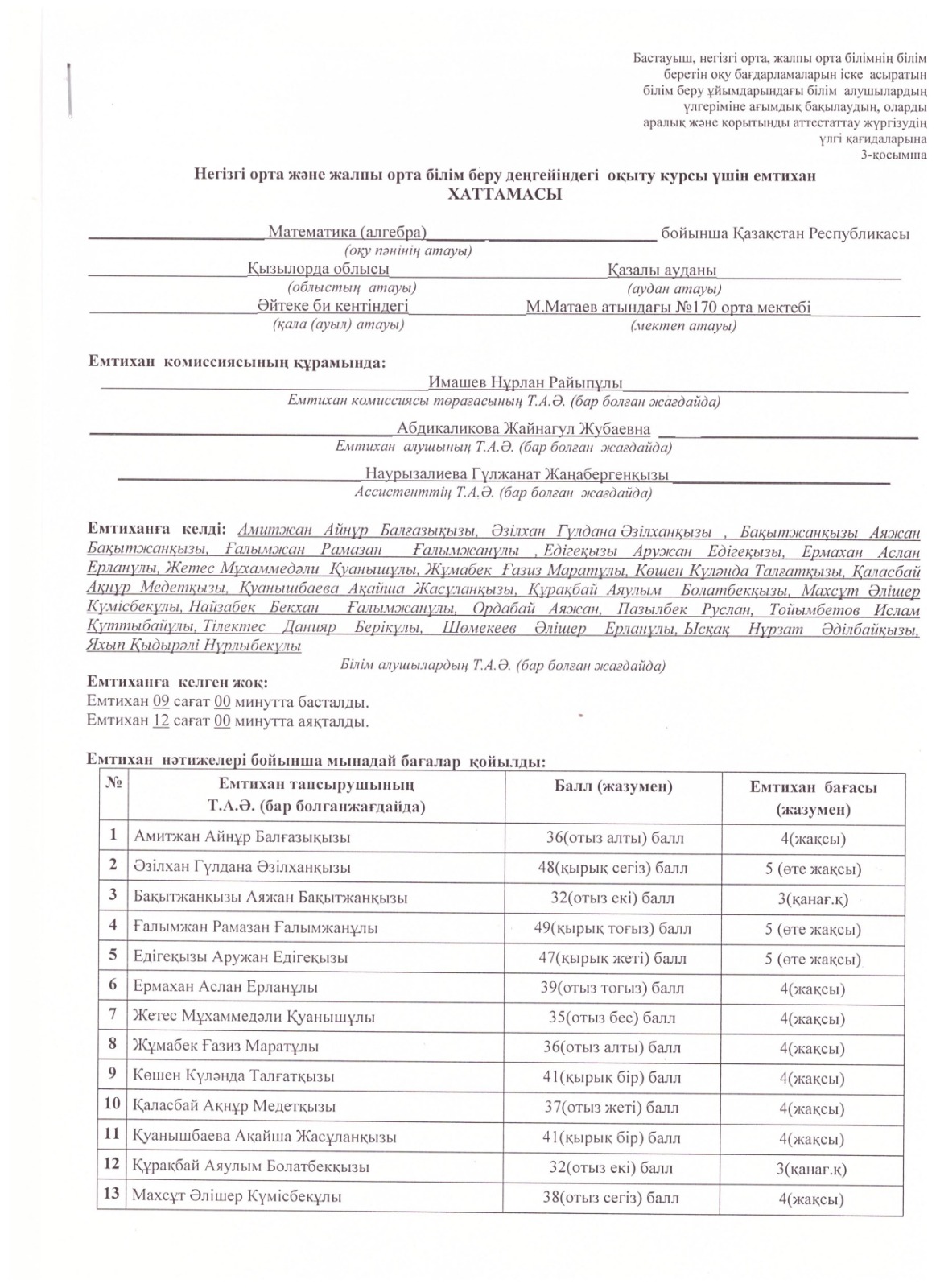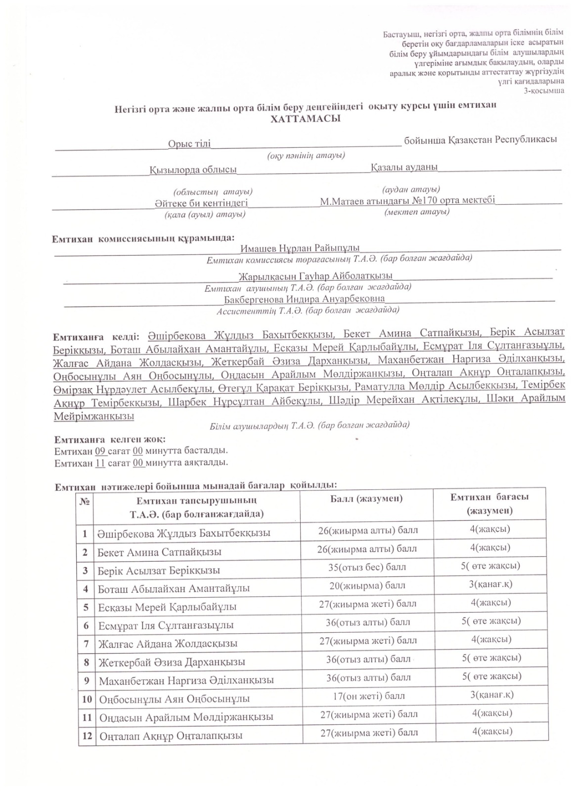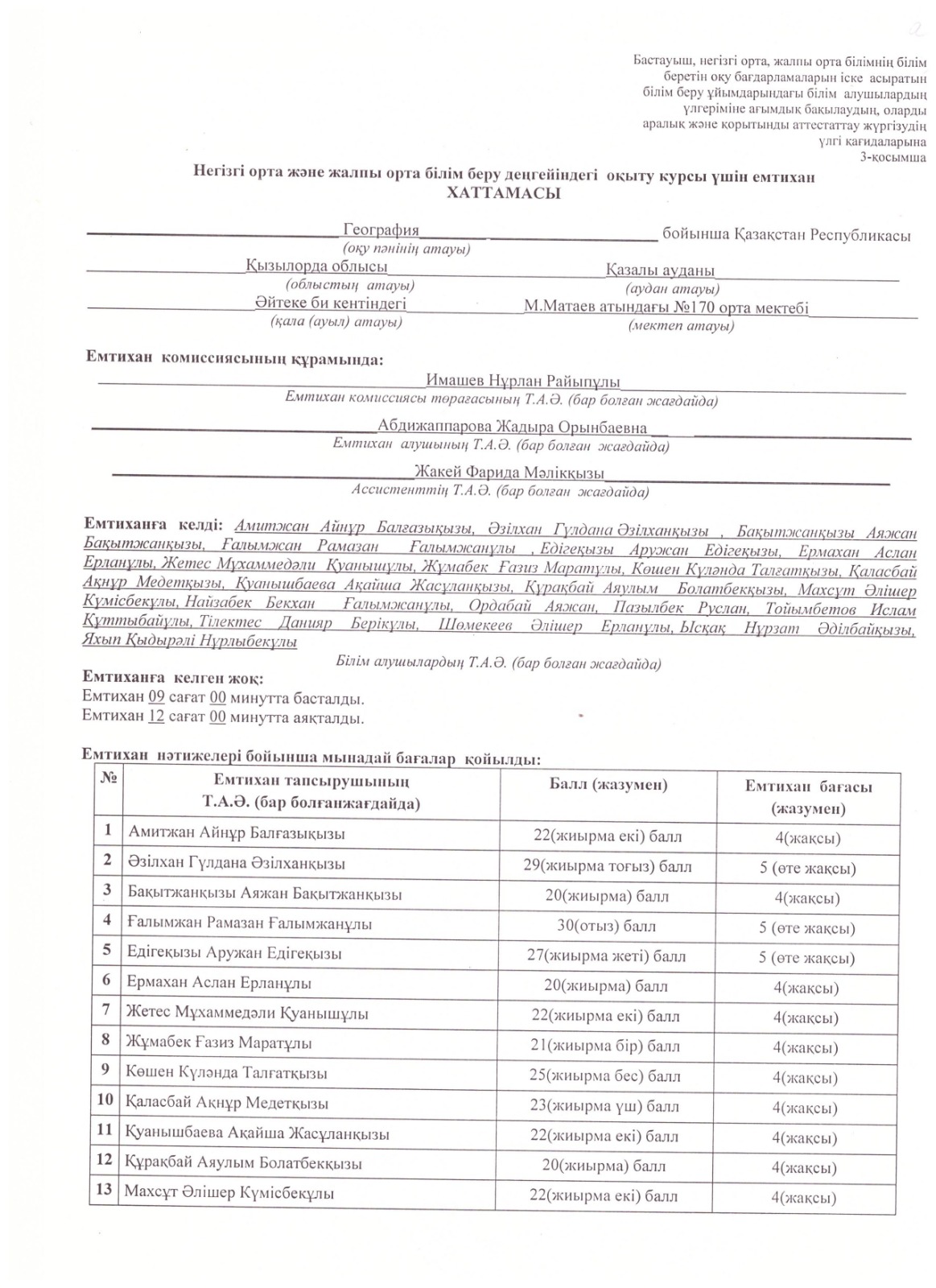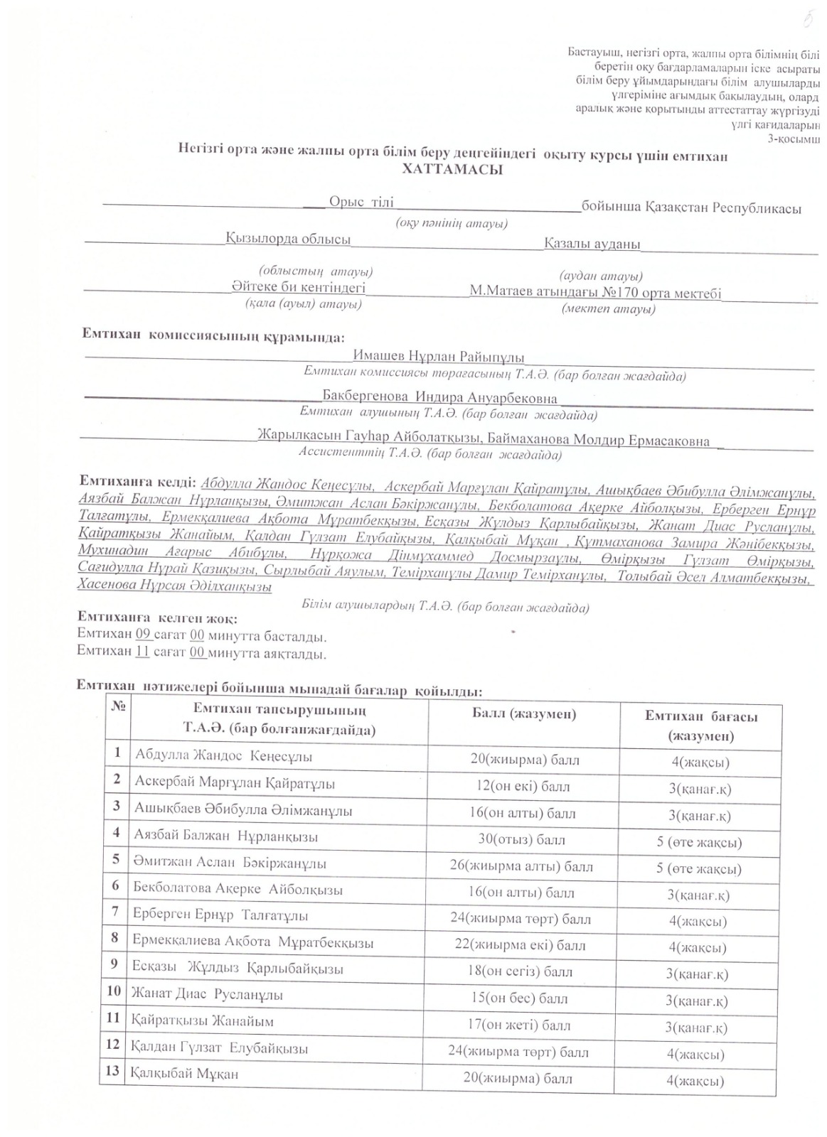 "Мұстафа Матаев" атындағы №170 орта мектебі" КММ