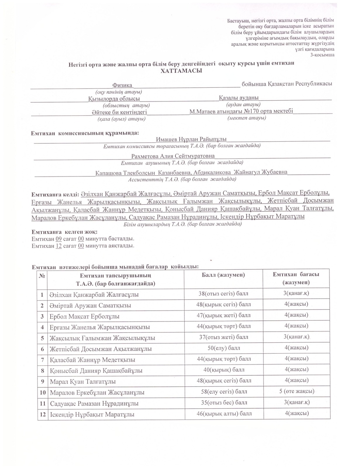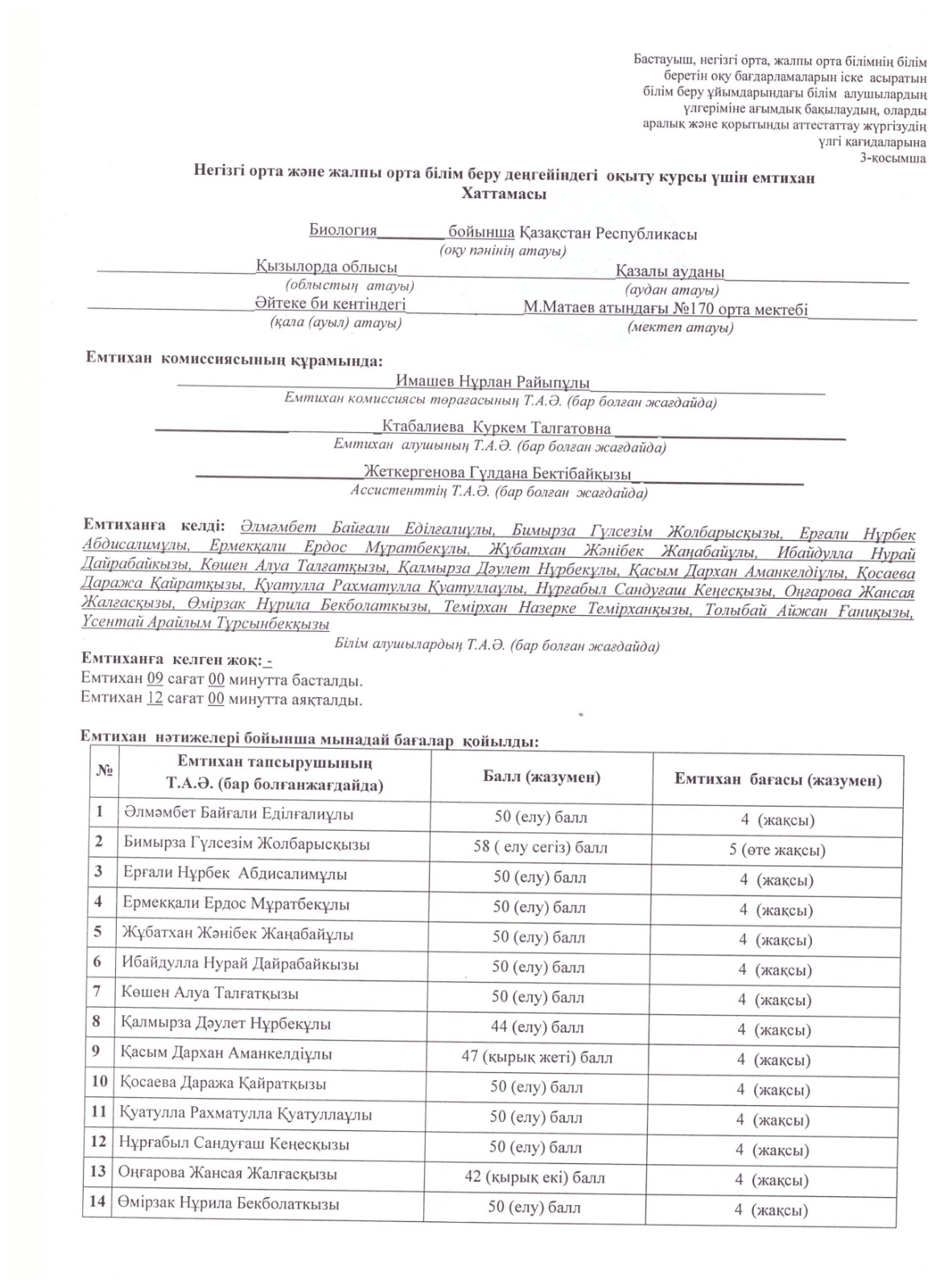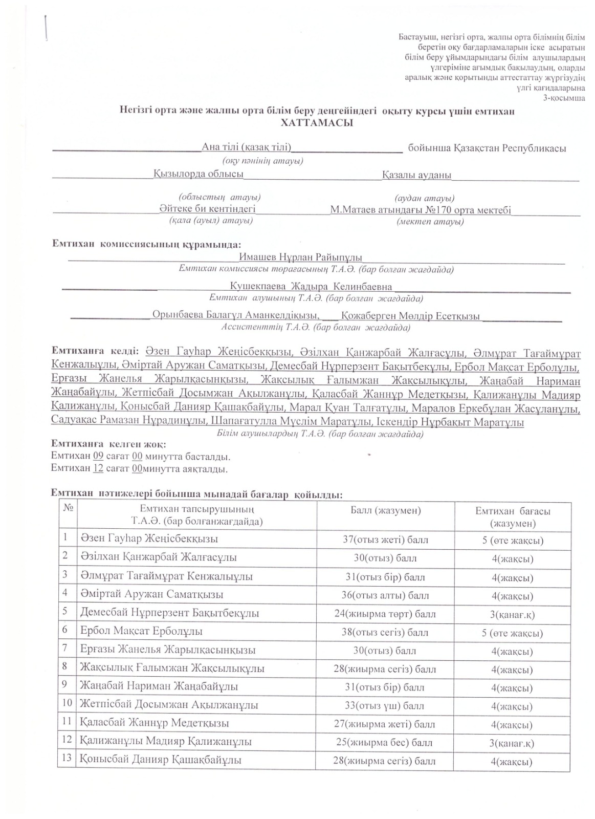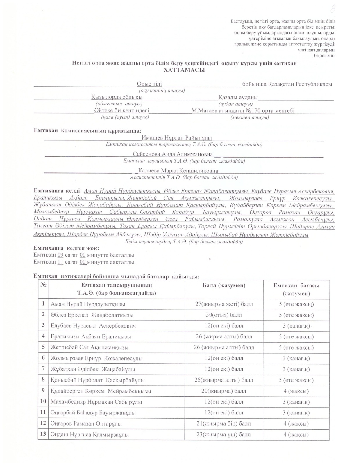 "Мұстафа Матаев" атындағы №170 орта мектебі" КММ