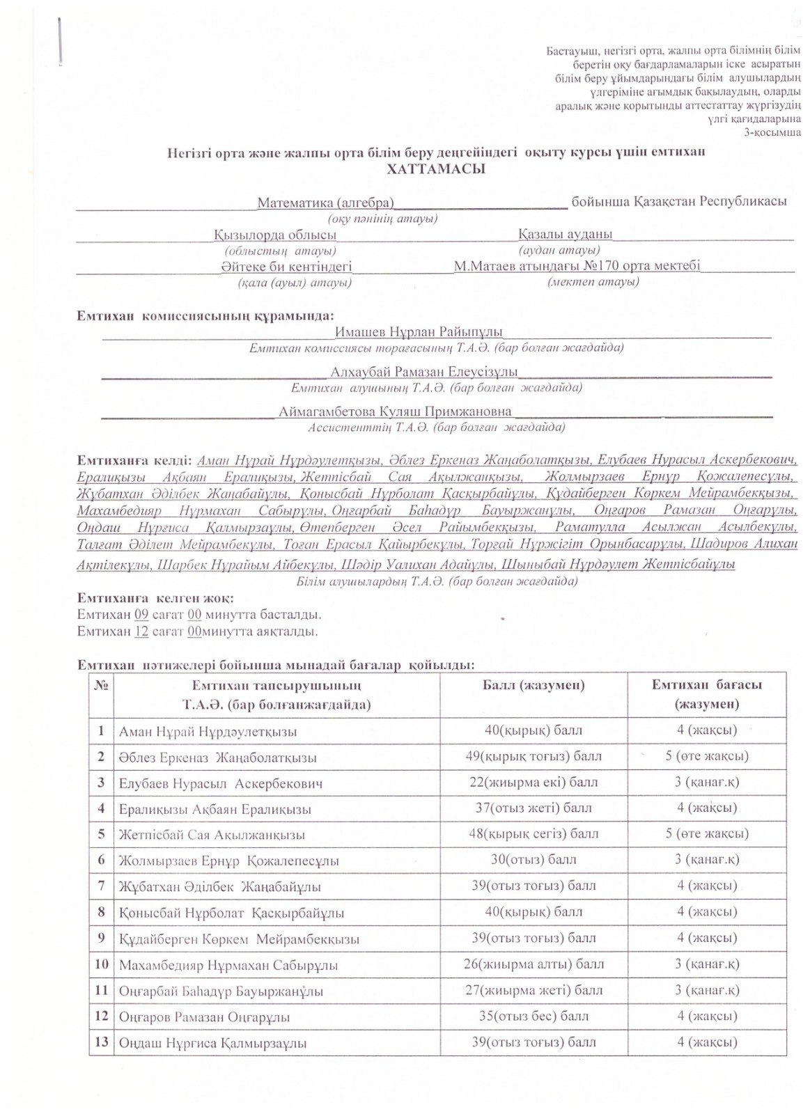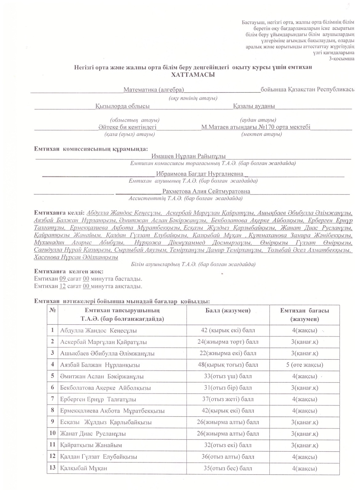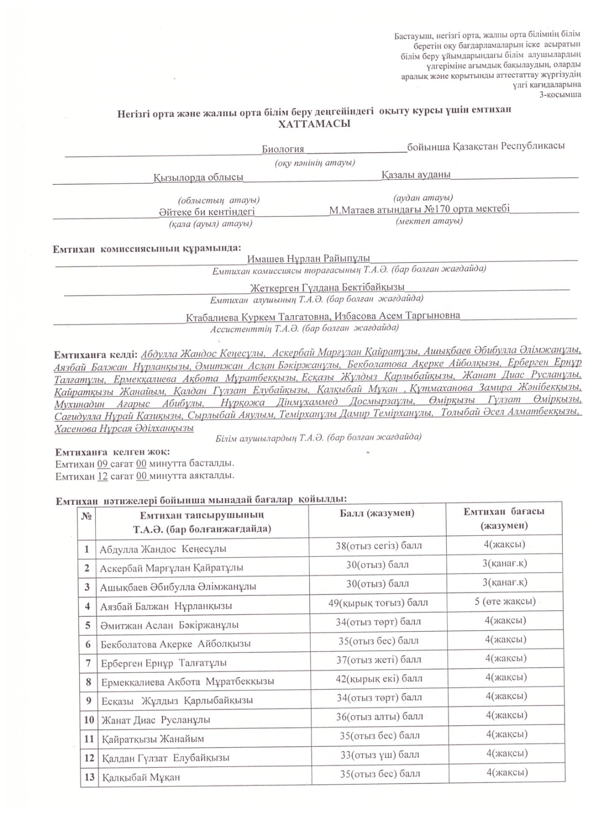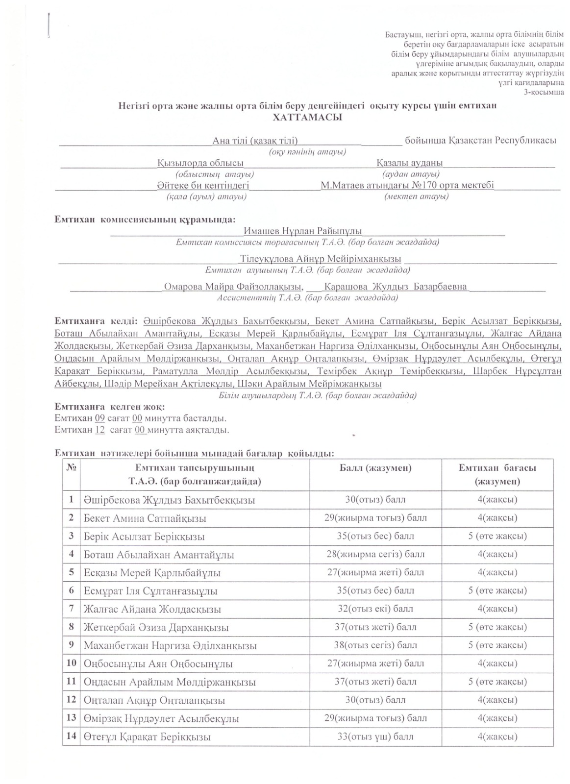 "Мұстафа Матаев" атындағы №170 орта мектебі" КММ