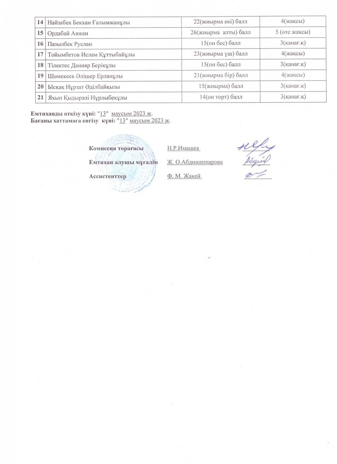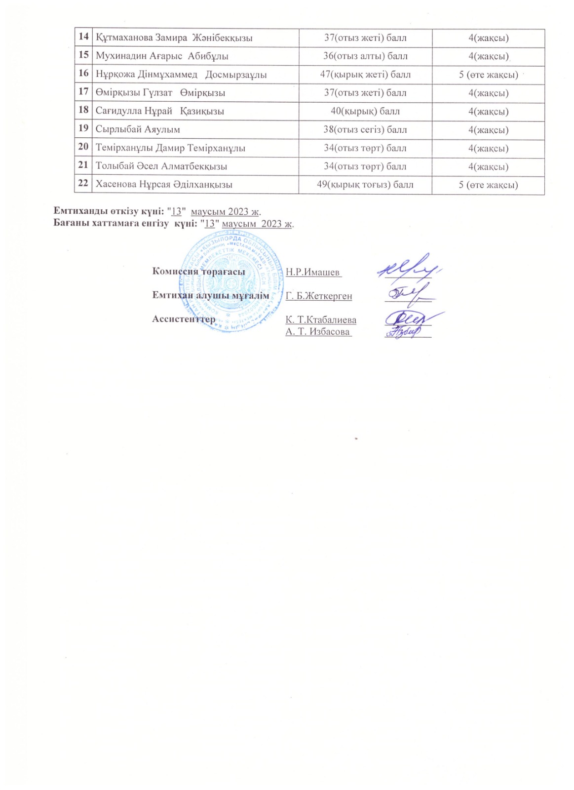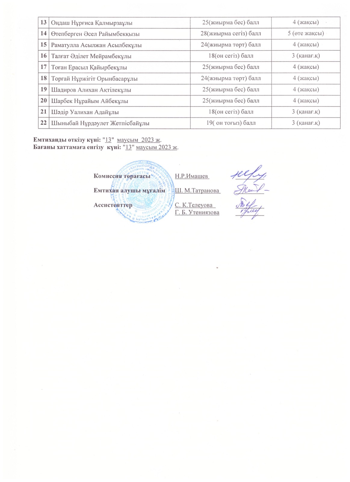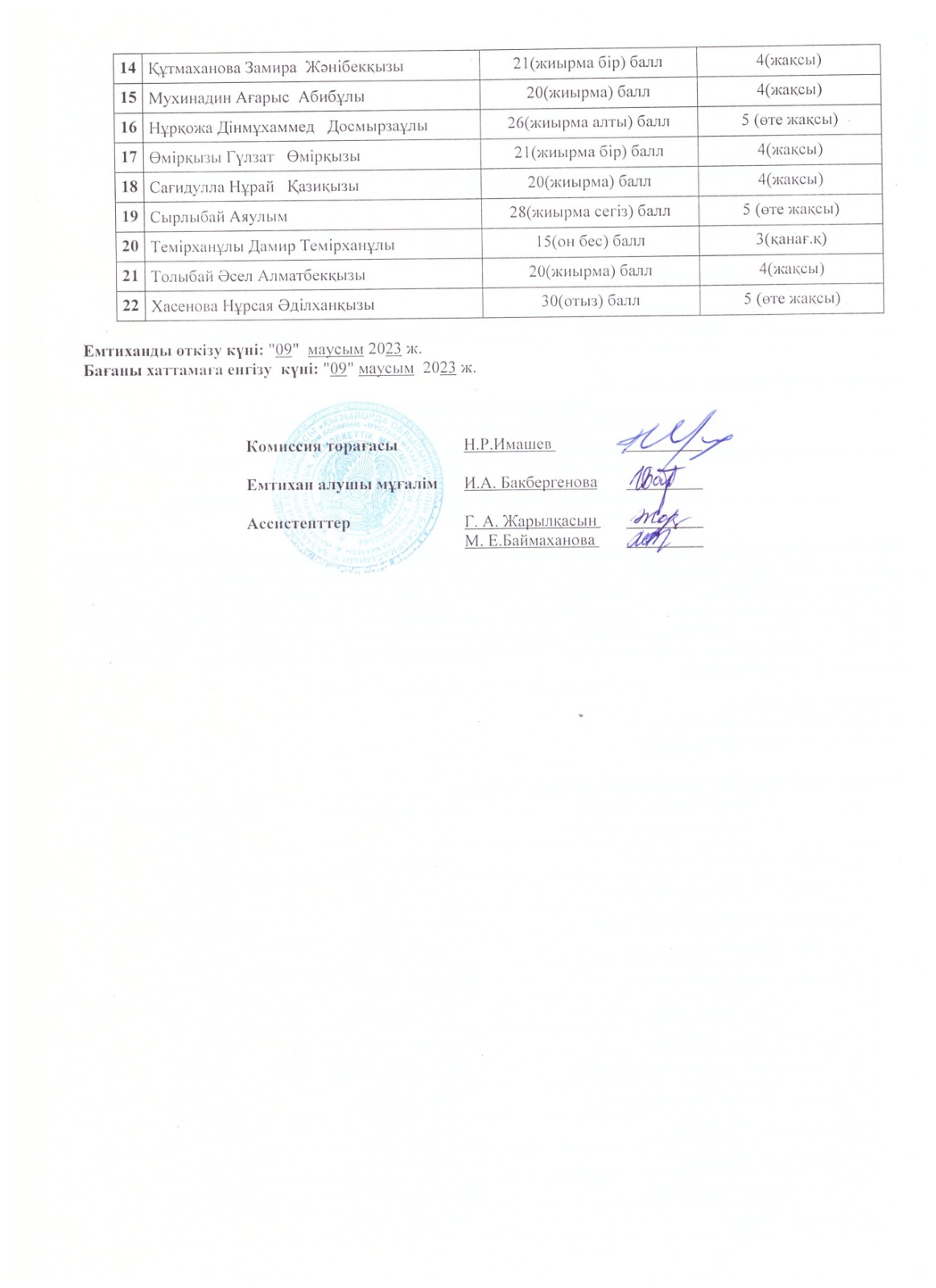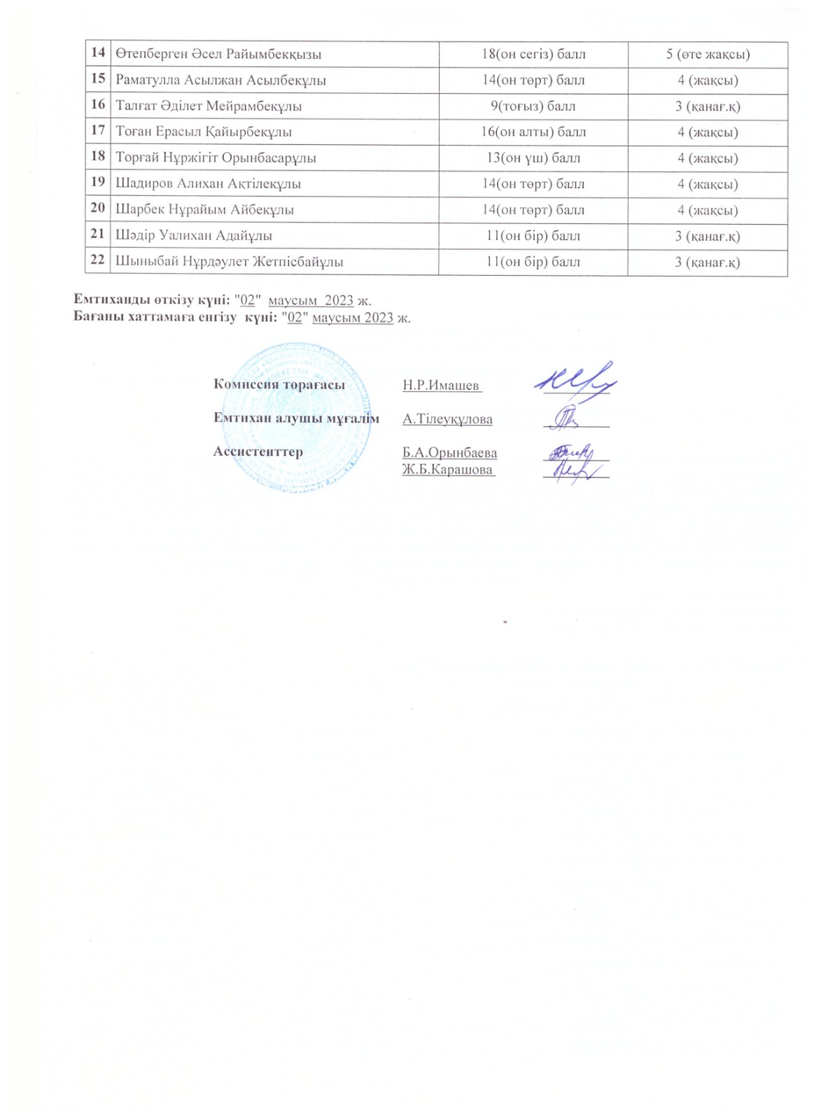 Оқу жұмыс жоспары 2022-2023 оқу жылы