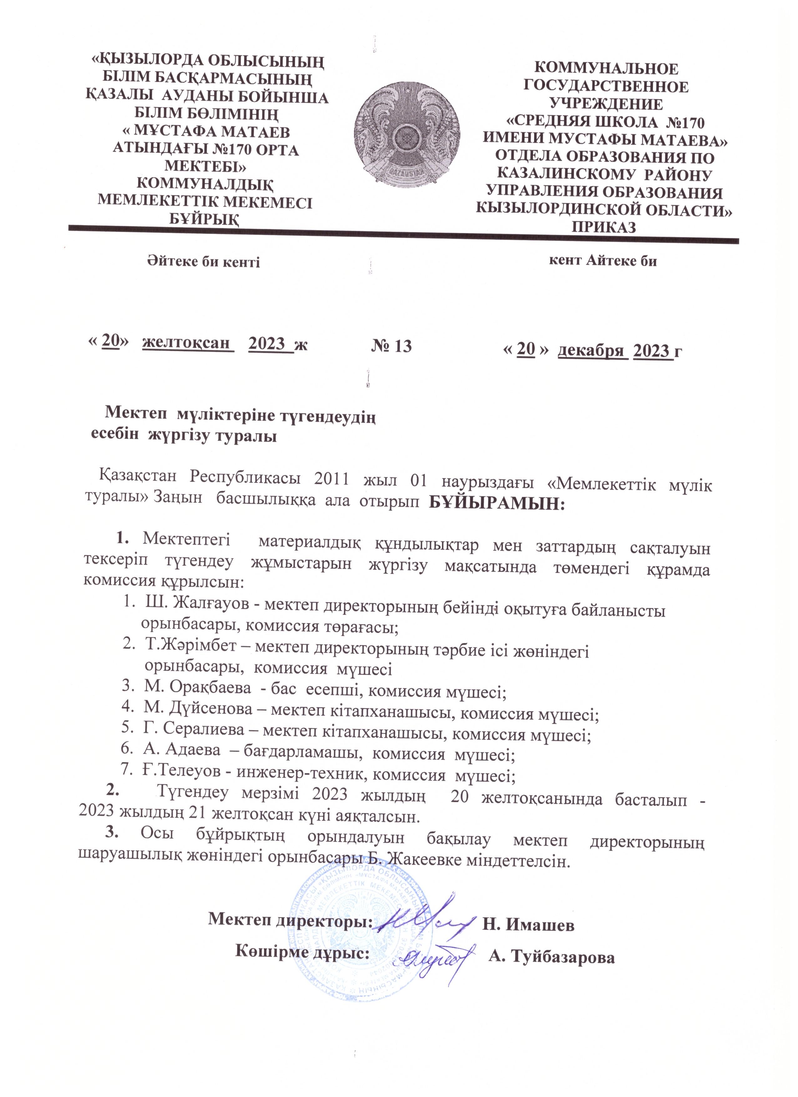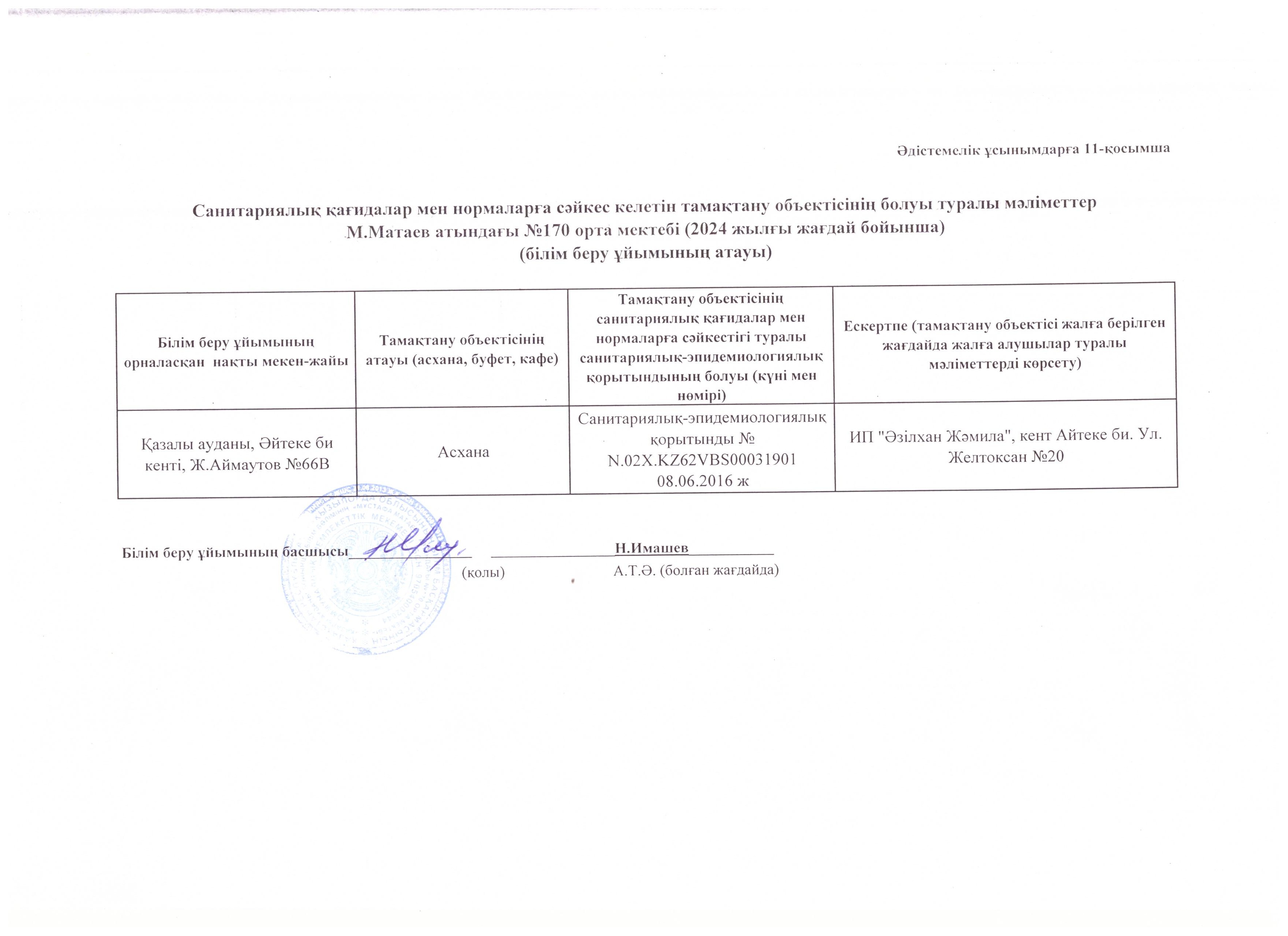 "Мұстафа Матаев" атындағы №170 орта мектебі" КММ