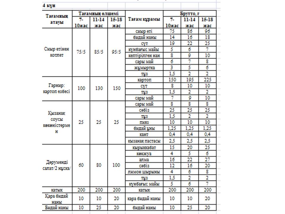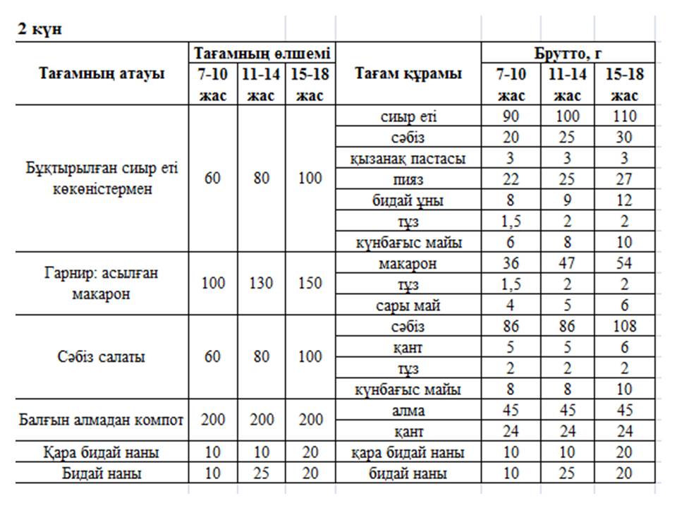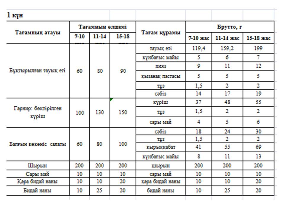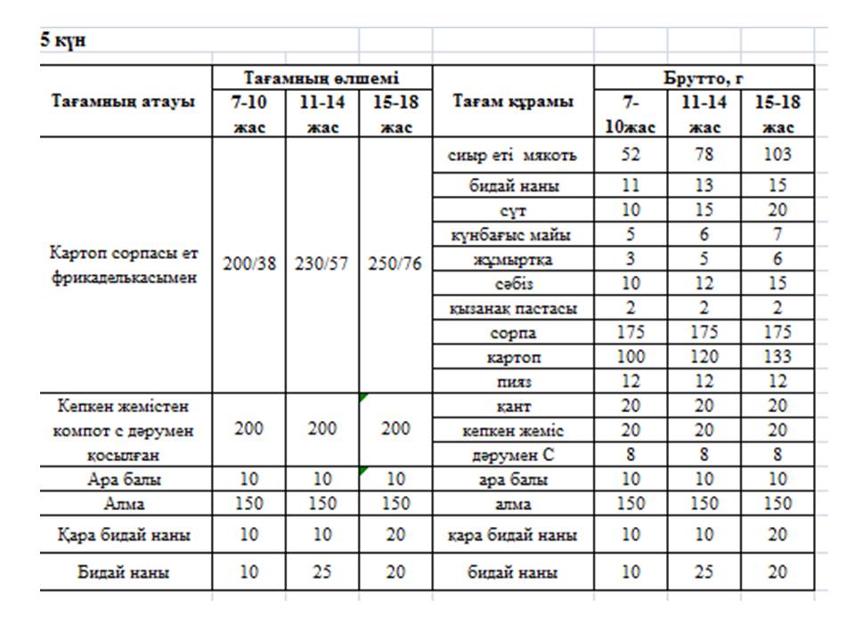 7 Ыстық тамақ кестесі